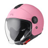 Casco demi-jet omologato ECE-R 22.06, dotato di visiera interna fumé a scomparsa e visiera esterna extra-lunga.