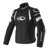 Giacca da moto sportiva con protezioni spalla e gomito.